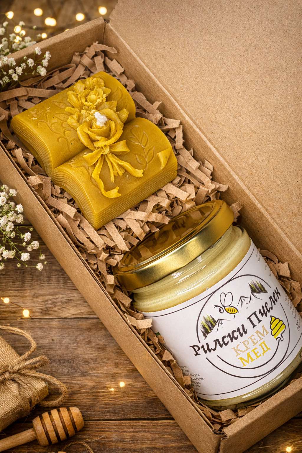 – Крем мед 250гр. – Крем – медът е 100% пчелен мед букет без никакви добавки, който е обработен механично чрез разбъркване в специална машина в продължение на няколко дни, до получаване на кремообразна текстура.Той не кристализира и запазва всички полезни качества и е лесен за намазване. Гали небцето и е много вкусен.
