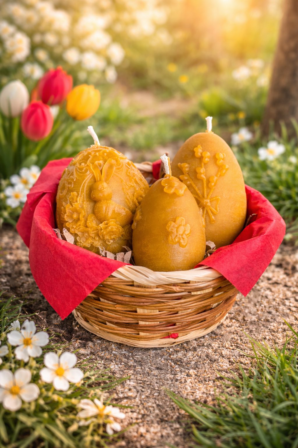 Пчелният восък е с различен цвят при всяка партида. Възможно е да получите свещите с по различен цвят от тези на снимката.